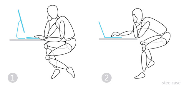 根據(jù)科技網(wǎng)站Business Insider,引用家具公司Steelcase的調(diào)查研究,歸納出幾種一般上班族必須避免的錯(cuò)誤姿勢: