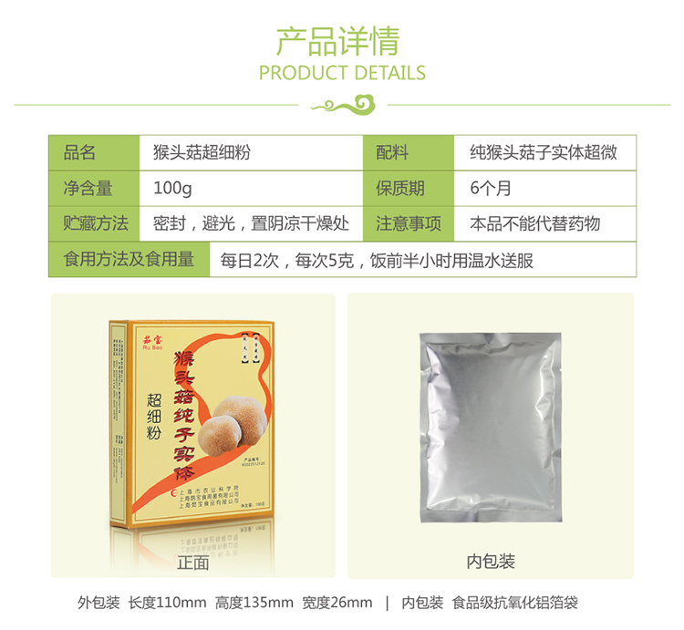 - 【配料】破壁靈芝孢子粉 【標志性成分及含量】 每100g含三萜1968mg、粗多糖1732mg 【適用人群】 免疫力低下者 【不適宜人群】 少年兒童 【食用方法及食用量】 每日3次,每次1克,溫開水沖飲 【保質(zhì)期】18個月 【貯藏方式】密封,避光,置陰涼干燥處 【注意事項】本品不能代替藥物 【執(zhí)行標準】Q/ABFZ 001S 【批準文號】國食健字G20050516 【凈含量】 120克(1克*120袋)