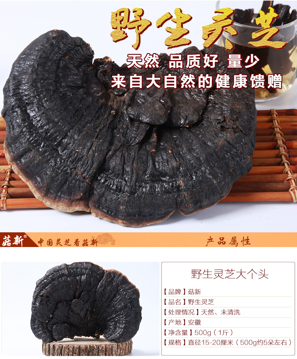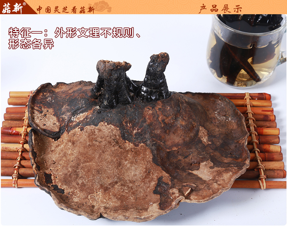 【功效成分及含量】每100克含:多糖1.5g、多肽13g、三萜0.9g